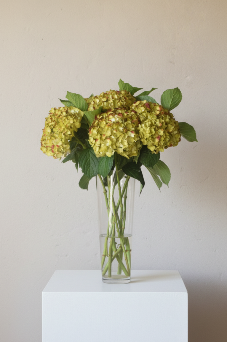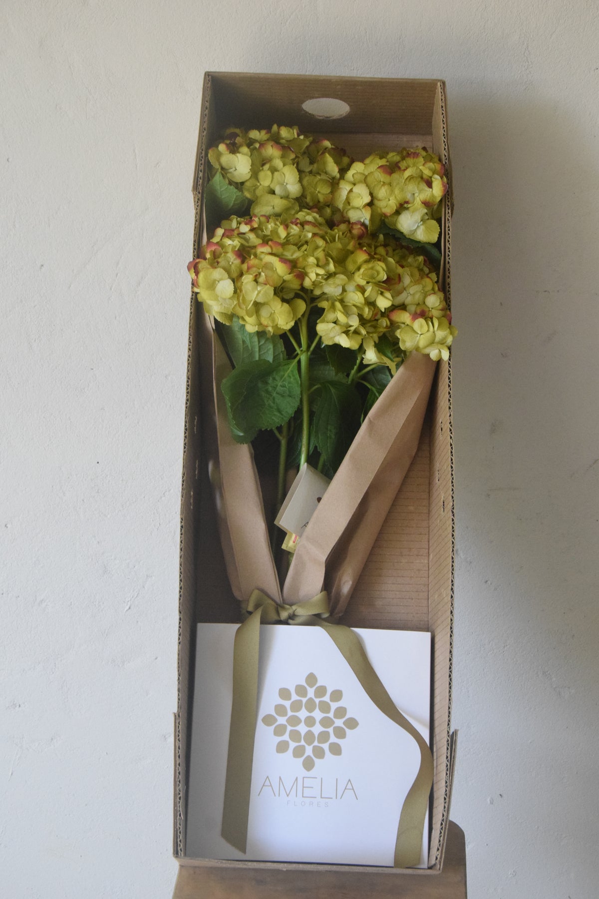 Descubre el encanto de nuestras hortensias premium con la exclusiva Caja Otoño Antique, creada especialmente para el mes de noviembre. Esta edición especial combina tonos verde oliva con puntas vino tinto, evocando la calidez otoñal, la sofisticación de lo clásico y la belleza de lo natural.