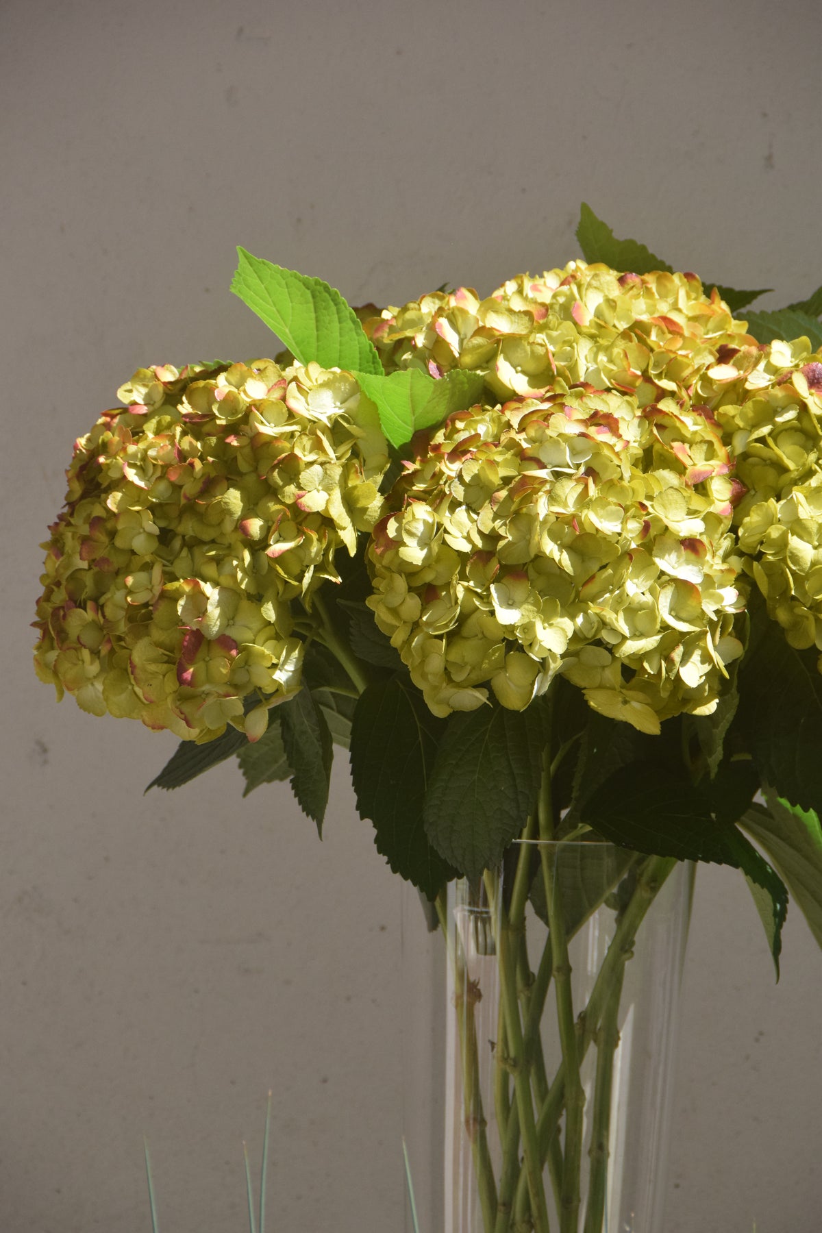 ✔️ Hortensias premium en tonos verde oliva con vino tinto