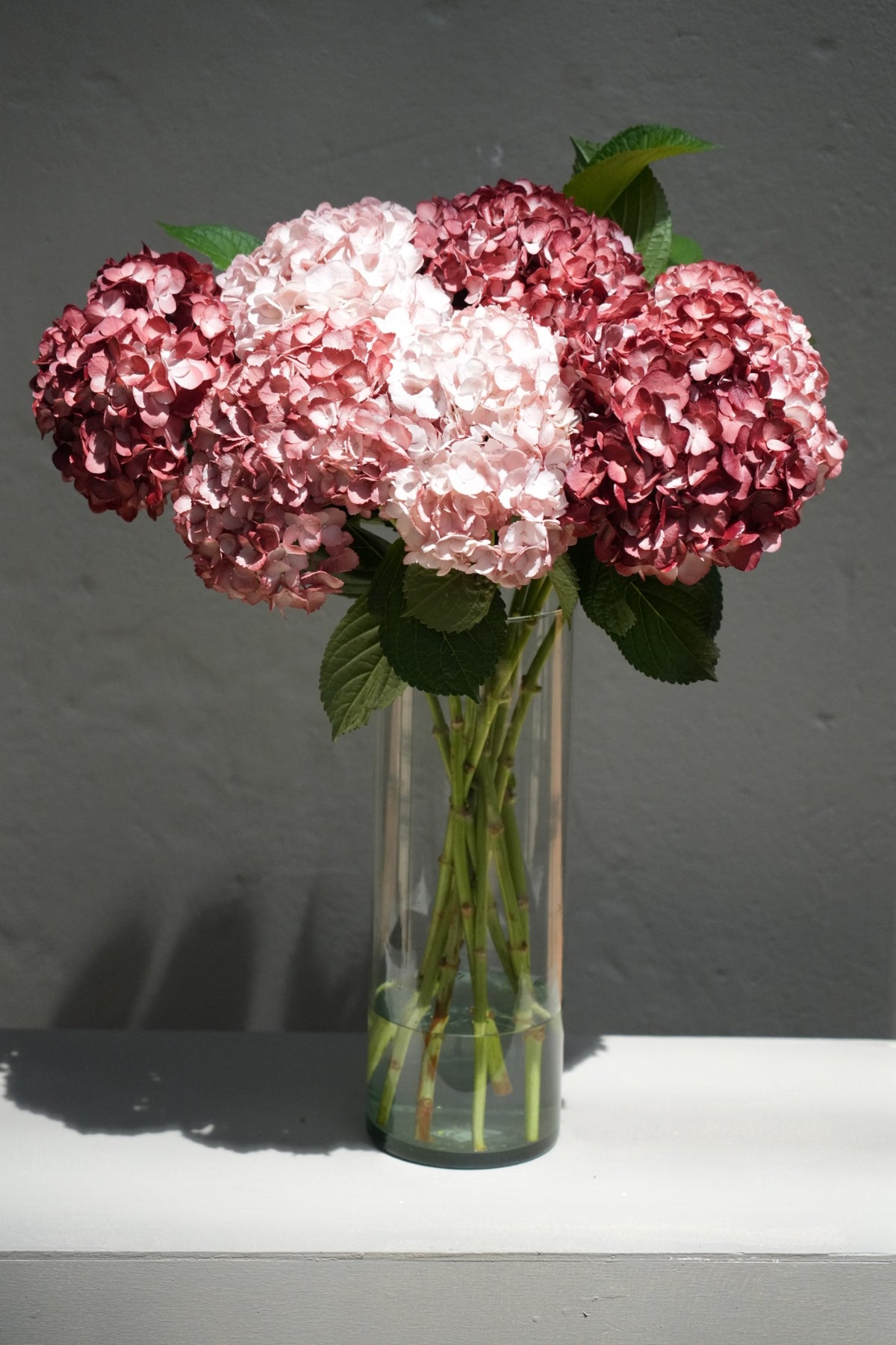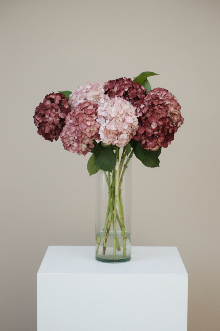 Cada hortensia 🌸, con copas de 19 a 20 cm de diámetro, es seleccionada cuidadosamente por su frescura, volumen y riqueza de matices. La caja se presenta con un elegante lazo 🎀 que realza la intensidad y sofisticación de esta edición especial.